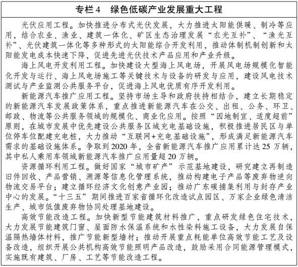 坚持绿色低碳发展理念,以绿色低碳技术创新和应用为重点,引导绿色消费,推广绿色产品,大幅提升新能源的应用比例,全面推进高效节能、先进环保、资源循环利用等产业体系建设。力争到2020年,全省绿色低碳产业产值规模超8000亿元。