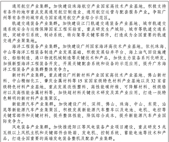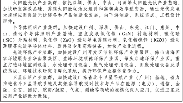 依托高新技术产业开发区、高技术产业基地、战略性新兴产业基地和各地特色产业园区现有基础,着力培育一批特色优势产业集群,不断增强产业集群在产业规模、技术水平、创新要素等方面的集聚效应和领先优势,推动形成各具特色的战略性新兴产业发展集聚区。依托珠三角地区尤其是珠江东岸地区电子信息产业发展基础,进一步增强新一代通信、新型显示、新型电子元器件等产业集群竞争力,培育形成物联网、卫星导航、移动互联网等新兴产业集群。依托珠江西岸地区的先进制造业尤其是装备制造业发展基础,发展壮大智能制造、航空、轨道交通、海洋工程装备、新能源等产业集群。依托珠三角中心城市,培育形成基因检测、基因工程药物、高端疫苗、生物育种等细分领域产业集群。依托粤东西北地区传统制造、海洋、农业等产业基础,培育壮大金属新材料、海洋生物、资源综合利用等产业集群。依托工业设计和文化创意产业基础,推动形成以数字文化创意技术和装备为载体,数字文化创意内容为表现形式的数字创意产业集群。